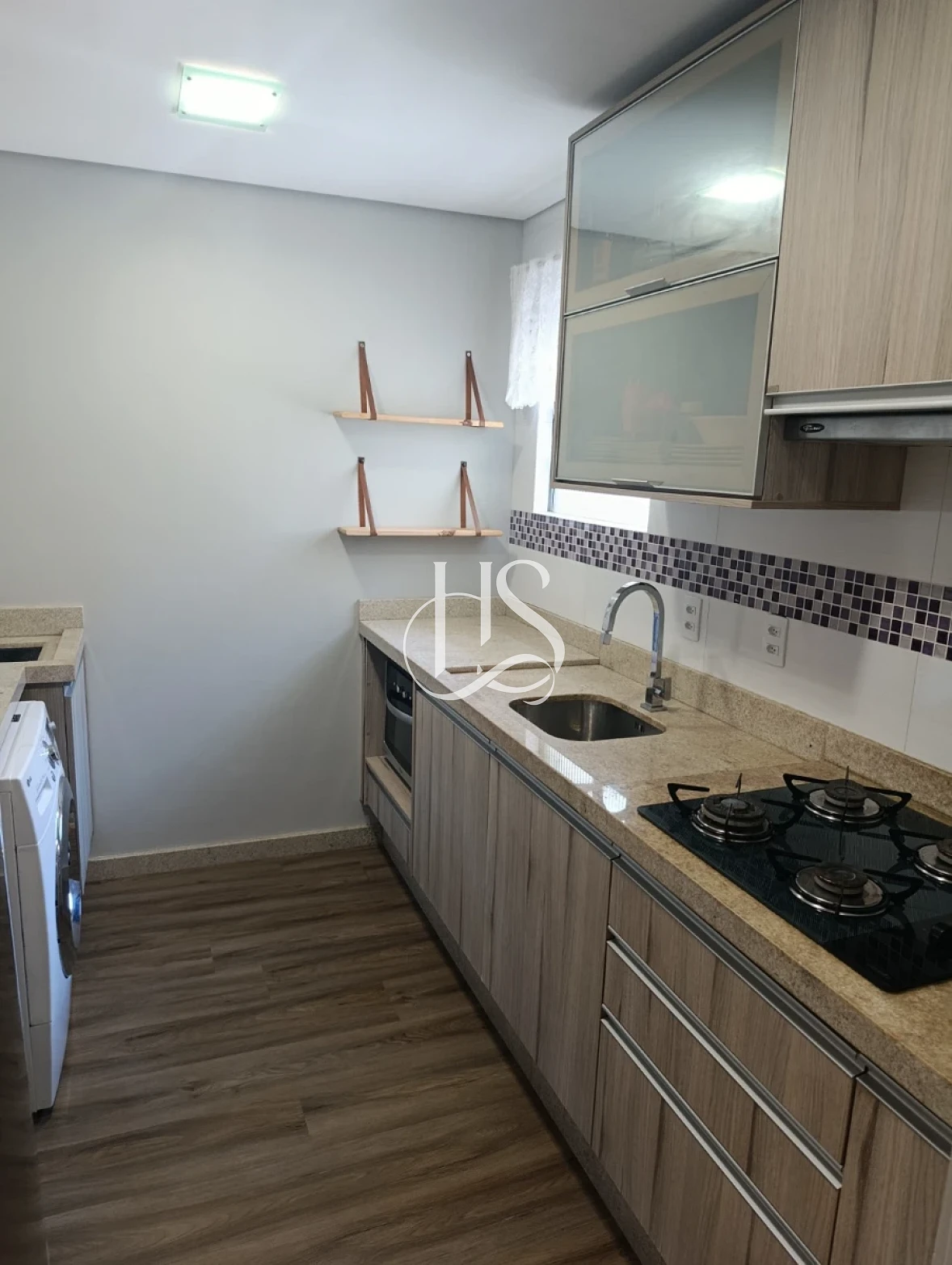No apartamento permanecem os móveis planejados, além de mesa de vidro na sala, cooktop, depurador e ar-condicionado do dormitório de casal, agregando ainda mais praticidade para quem deseja comprar e já entrar para morar.