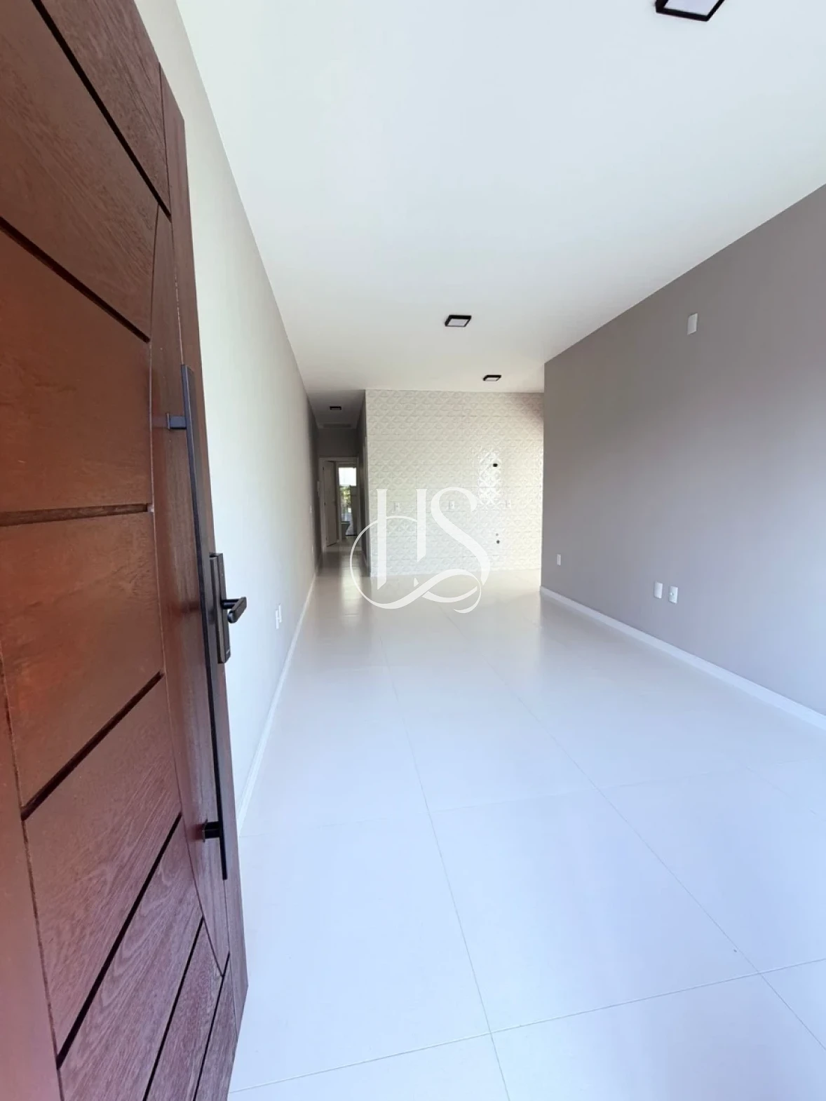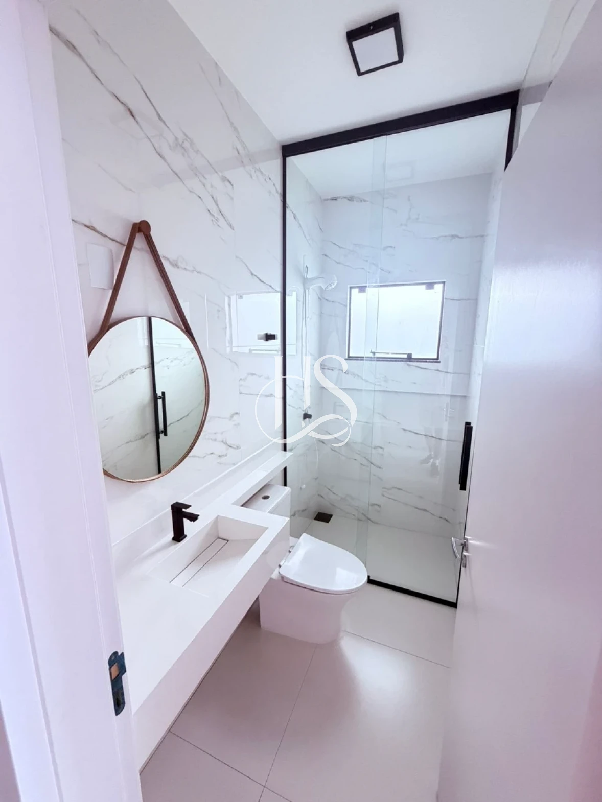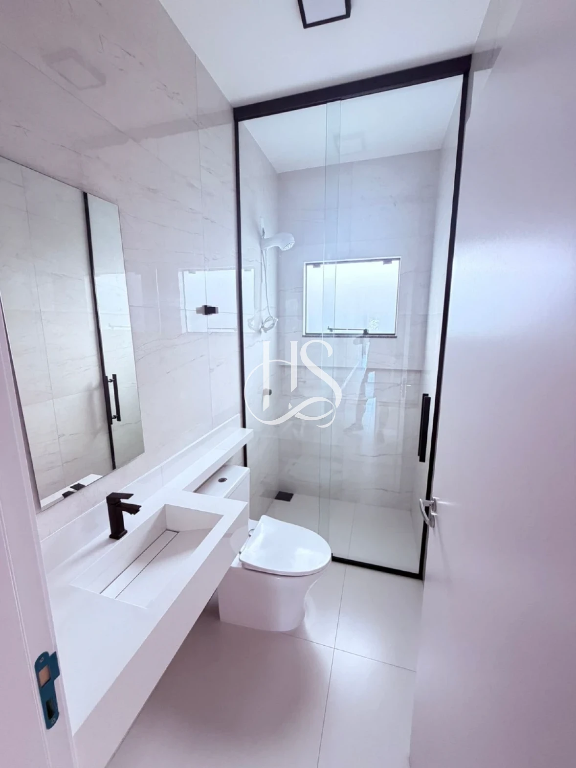 O acabamento é um verdadeiro destaque: as paredes com massa corrida proporcionam um toque aveludado, complementadas por rodapés elegantes e piso retificado de alta qualidade. As esquadrias pretas trazem o contraste moderno que é tendência na arquitetura atual.