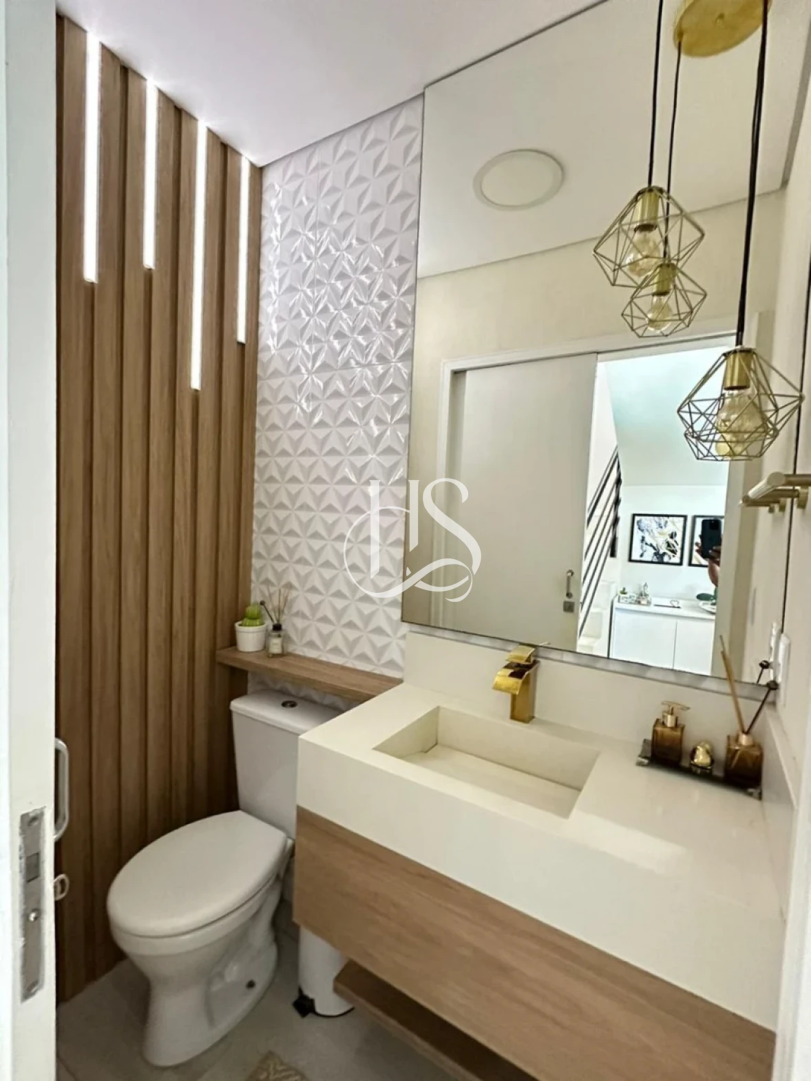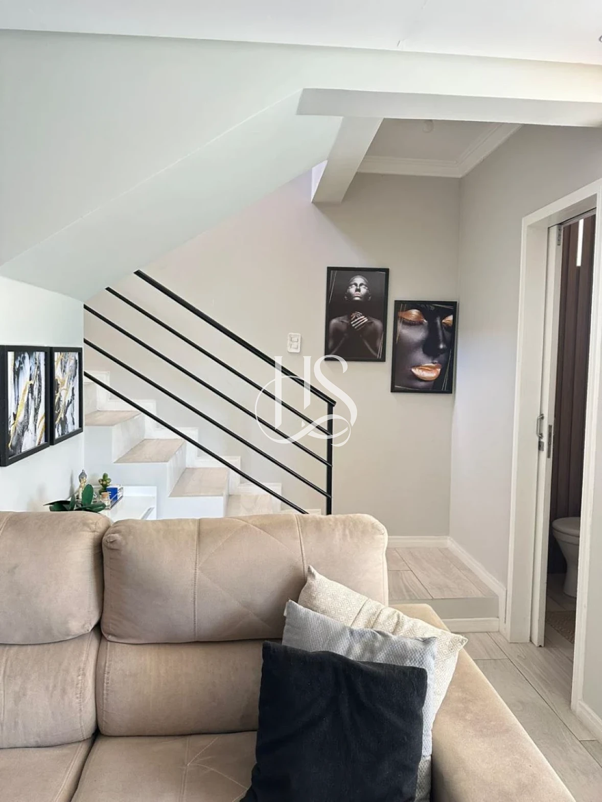No pavimento térreo, o sobrado conta com sala de estar e cozinha integradas, criando um ambiente moderno e acolhedor para convivência. O imóvel também possui 01 lavabo de apoio, trazendo mais comodidade para moradores e visitantes.