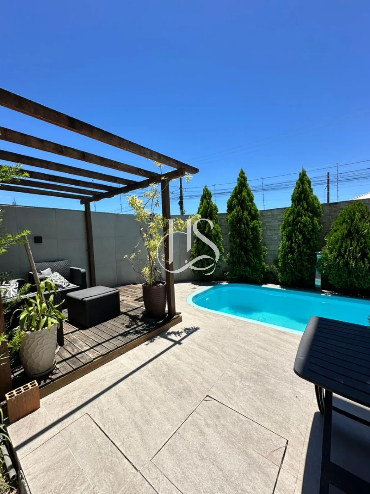 A área externa é um verdadeiro diferencial do imóvel, ideal para momentos de lazer e confraternização. O espaço conta com churrasqueira, piscina, pergolado com deck, além de área de serviço independente, proporcionando um ambiente perfeito para reunir familiares e amigos.
